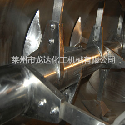 犁刀混合機由圓筒體、傳動機構(gòu)、犁刀、飛刀四部組成;工作時,犁刀做圓周運動,物料被犁刀刀面分流成兩個方向形成雙向物料流,與兩側(cè)犁刀分流過來的物料相互交叉形成對流,當物料流經(jīng)高速飛刀時又被高速飛刀葉片剪切和拋灑,從而在較短時間內(nèi)達到均勻混合。本機的混合精度高,混合時不產(chǎn)生離析,尤其對于容易團聚的物料,可以起到解聚和打散的作用。
